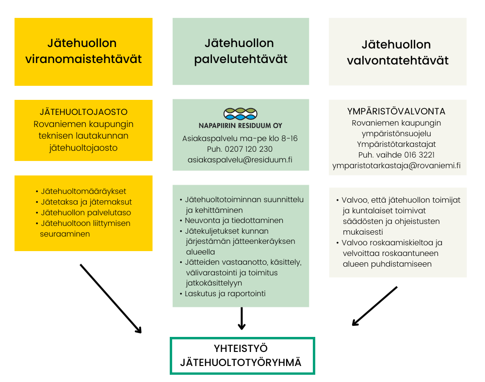 Napapiirin Residuum Oy on jatkuvasti kehittyvä arktisen kiertotalouden toimija, joka palvelee asukkaita Rovaniemellä, Pellossa ja Ranualla. Residuumin tehtävä on tuottaa laissa kuntien vastuulle säädetyt jätehuollon palvelutehtävät. Yhtiön vastuulla on muun muassa bio- ja pakkausjätteiden keräyksen järjestäminen Rovaniemen keskustaajamassa sekä kotitalouksien hyötykäyttömateriaalien jätehuollon järjestäminen ja lajitteluneuvonta. Tutustu strategiaamme alla olevista kuvista. Kuva laajentuu sitä klikkaamalla.